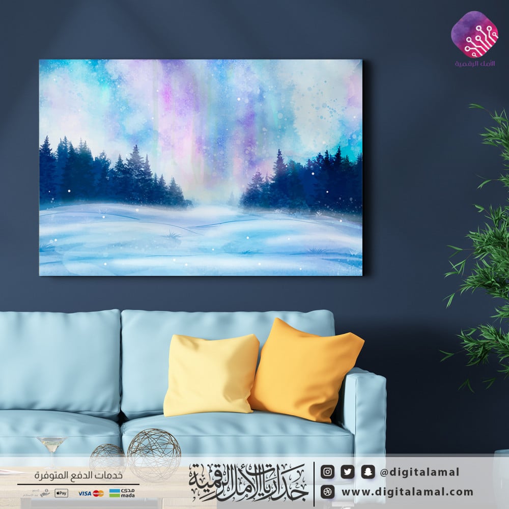 لوحة جدارية مميزة لإحدى الغابات المغطاة بالثلج-لوحة جدارية مطبوعة بجودة ودقة عالية على خامة الكانفاس مع إطار مخفي ومصممة باحترافية وبعناية بأجود أنواع الأحبار لتتماشى مع مختلف أنواع الديكورات العصرية.