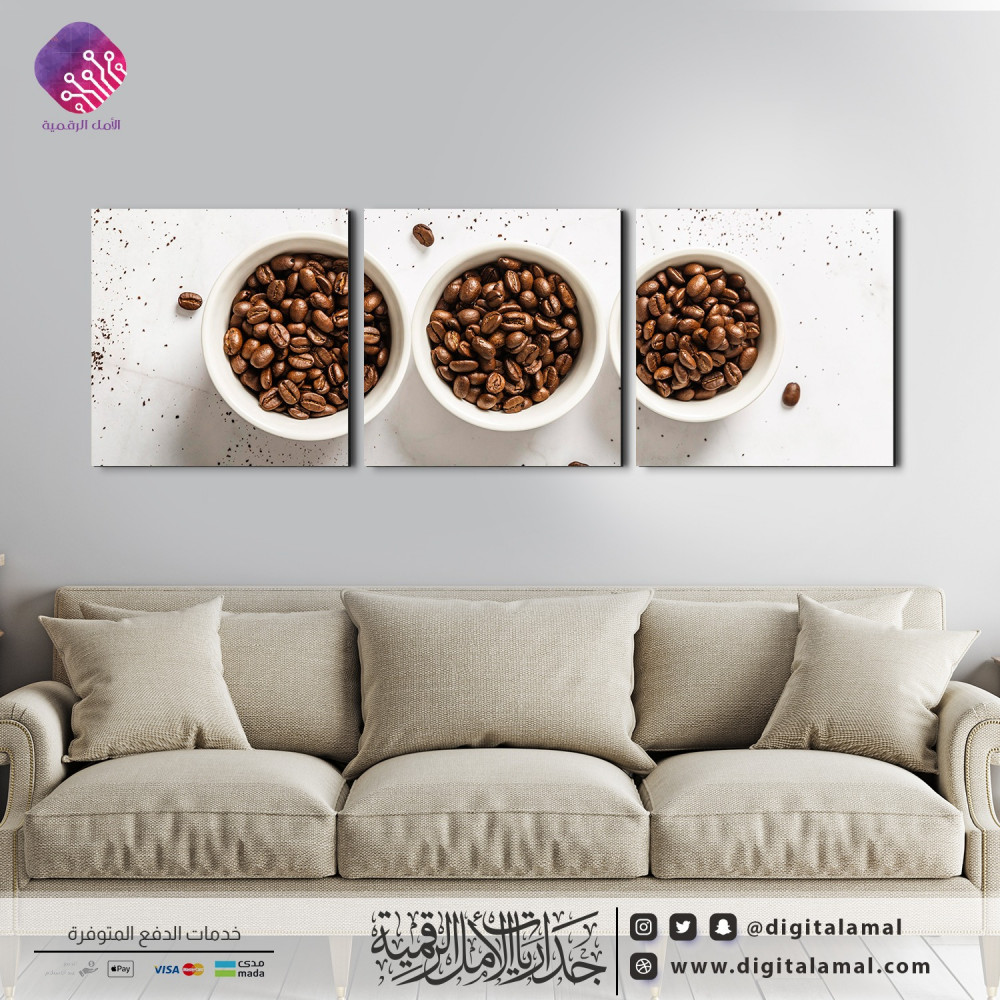 لوحات جدارية متعددة لثلاث فناجين من البن-لوحات متعددة مصنوعة من الكانفاس عالي الجودة،تم شد القماش على إطار خشبي مخفي،تصميم جذاب لمحبي القهوة طبع باستخدام أجود الأحبار ،تصميم عصري جميل يتماشى مع ديكورات عديدة مثل المقاهي والمنازل ومتاجر القهوة وغيرها ،تضفي على المكان الرقي و الأناقة