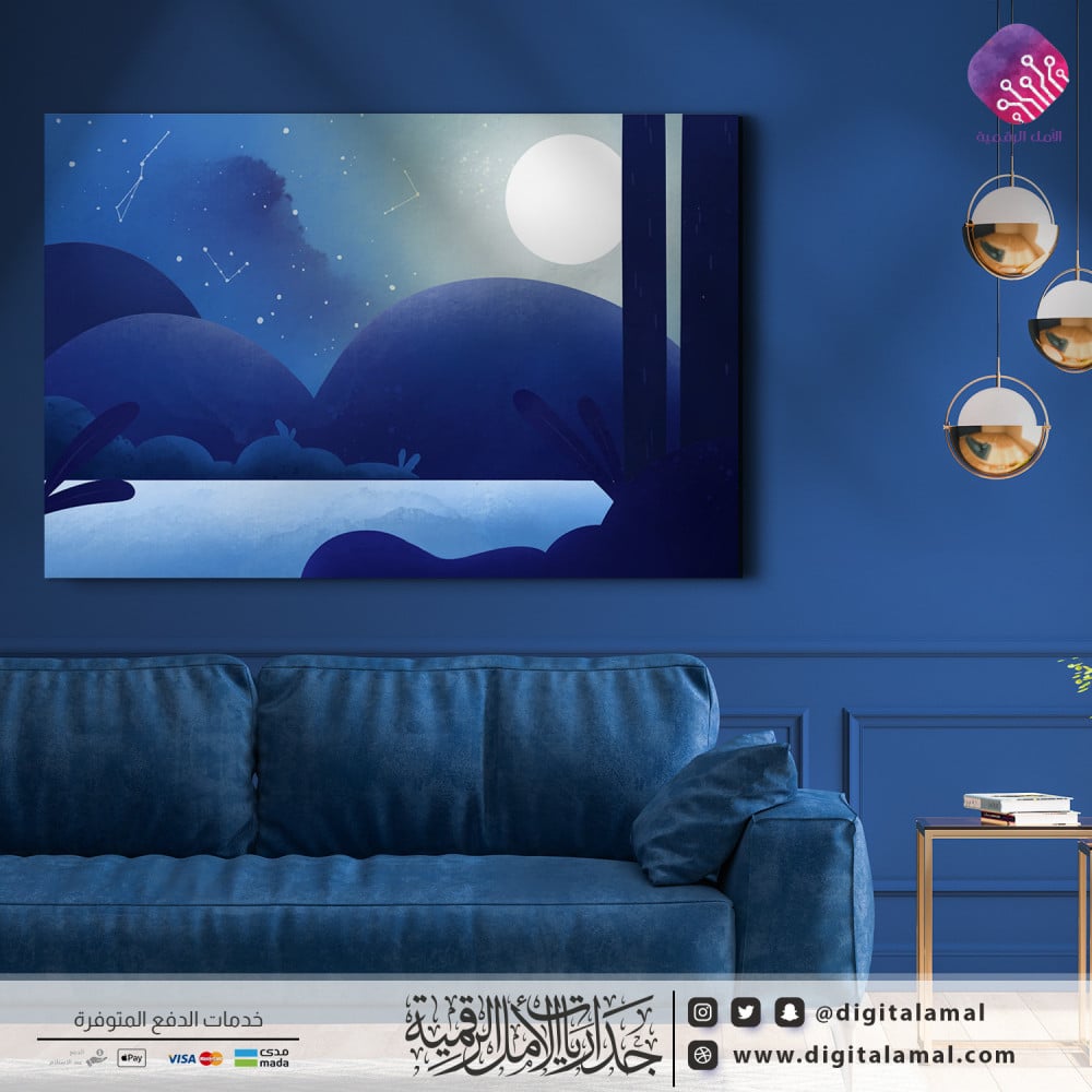 لوحة جدارية مميزة للقمر العملاق ليلًا-لوحة جدارية مطبوعة بجودة ودقة عالية على خامة الكانفاس مع إطار مخفي ومصممة باحترافية وبعناية بأجود أنواع الأحبار لتتماشى مع مختلف أنواع الديكورات العصرية.