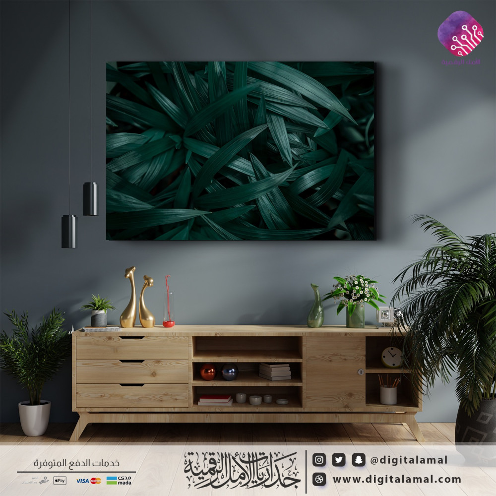 لوحة جدارية لنباتات وحشائش الغابة-لوحة جدارية مصنوعة من خامة الكانفاس عالي الجودة،مصممة ومطبوعة بدقة عالية وباستخدام أجود الأحبار ،تصميم عصري يتماشى مع ديكورات المنازل والمقاهي ،تأتي اللوحة بإطار مخفي، تضفي على المكان لمسة الأناقة والرقي