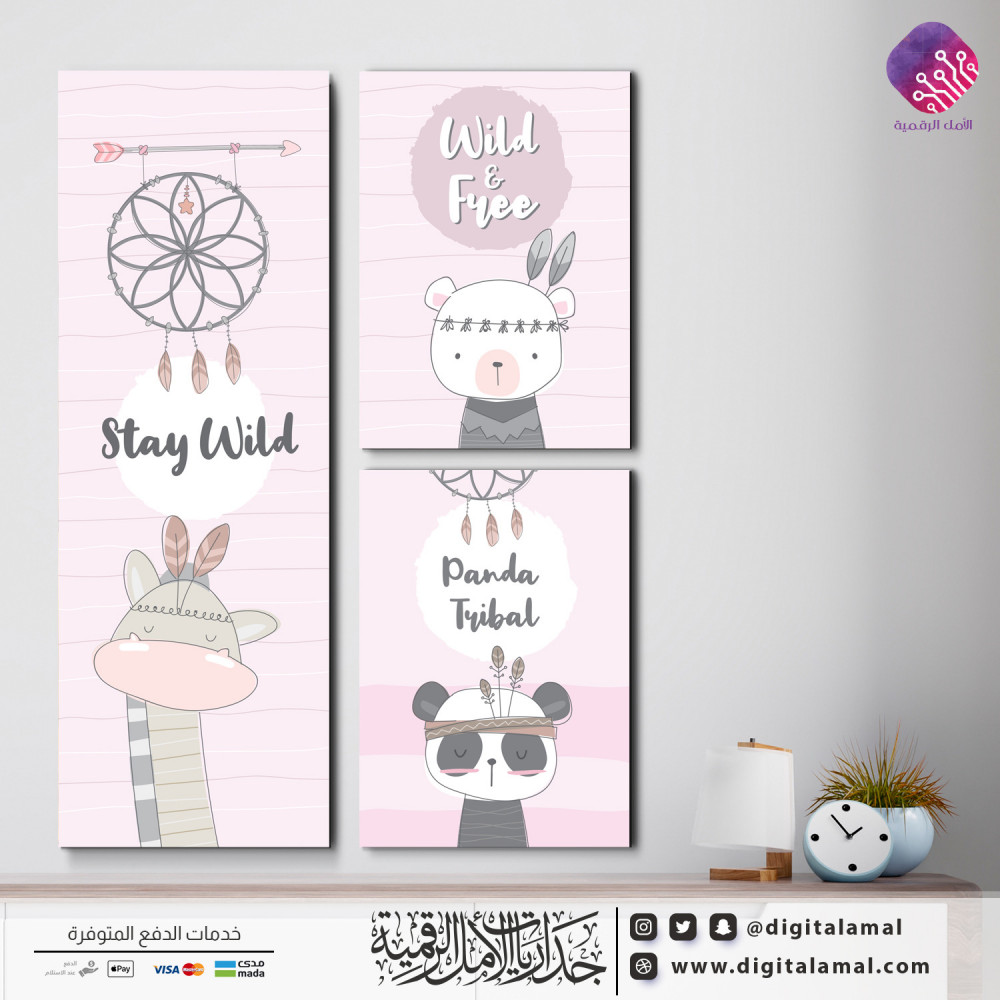 لوحات جدارية متعددة لدببة وزرافة بتصميم مميز-ثلاث لوحات من قماش الكانفاس عالي الجودة مشدود على إطار مخفي،تصميم عصري مميز للأطفال باستخدام أجود أنواع الحبر لتصل إليك جاهزة للتعليق،تصميم لطيف يتماشى مع غرف الاطفال وأماكن تعليمهم مثل الحضانة،تضفي على المكان اللطافة والرقي بتصميمها الجذاب