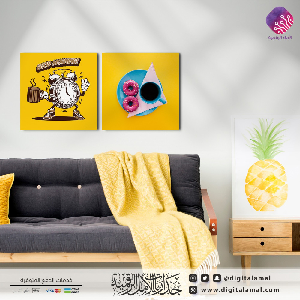 لوحات جدارية متعددة بتصميم عصري-لوحات جدارية متعددة مكونة من قسمين، مطبوعة بأجود الأحبار على قماش الكانفاس عالي الجودة،تم شد الكانفاس على إطار خشبي مخفي متين، تصميم عصري جذاب للمنازل والمقاهي ومتاجر القهوة وغيرها الكثير،تضفي بألوانها الزاهية الأناقة والرقي وتكمل بها أثاث المكان الذي ترغب بتعليقها فيه