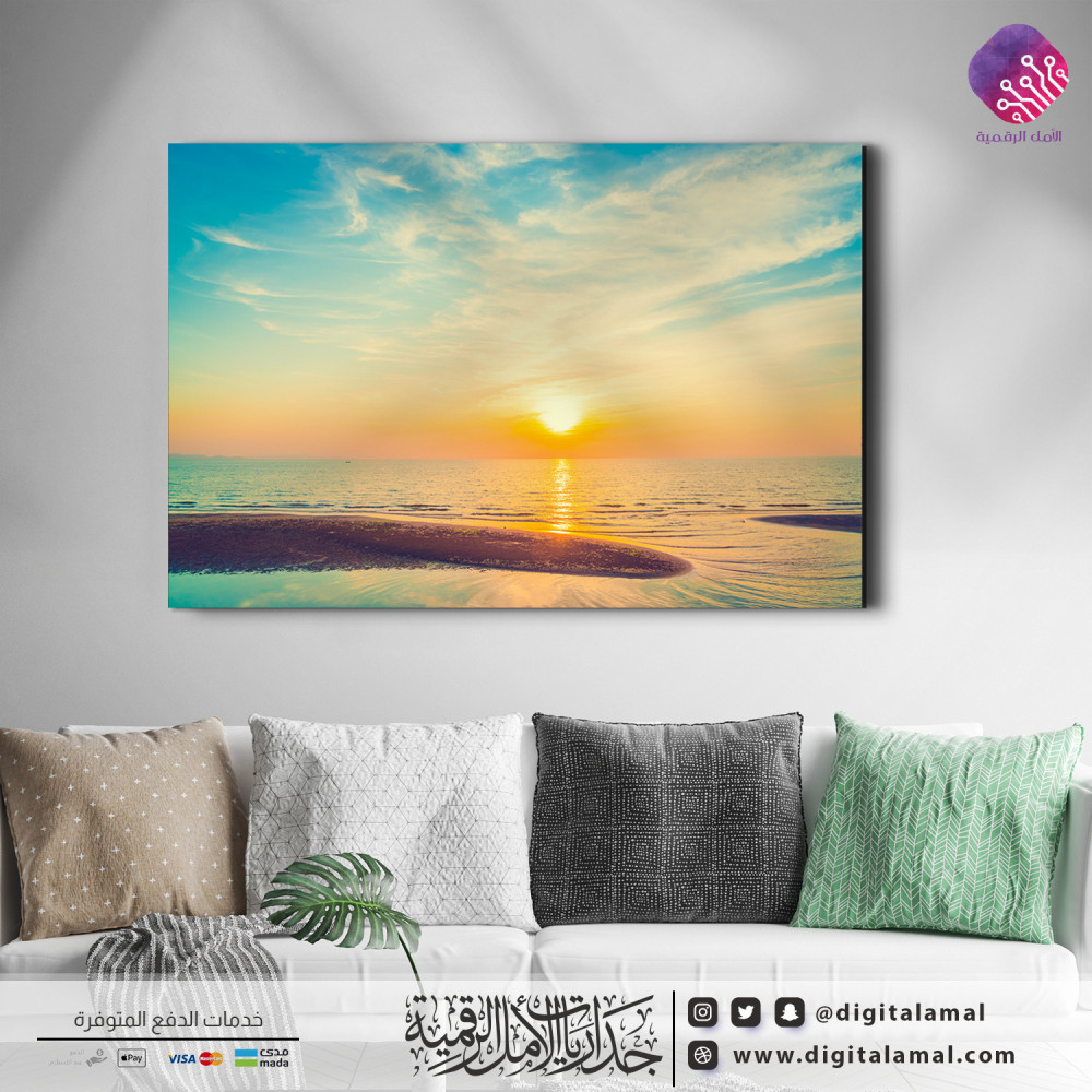 لوحة جدارية مميزة لغروب الشمس من البحر-لوحة جدارية مطبوعة بجودة ودقة عالية على خامة الكانفاس مع إطار مخفي ومصممة باحترافية وبعناية بأجود أنواع الأحبار لتتماشى مع مختلف أنواع الديكورات العصرية.
