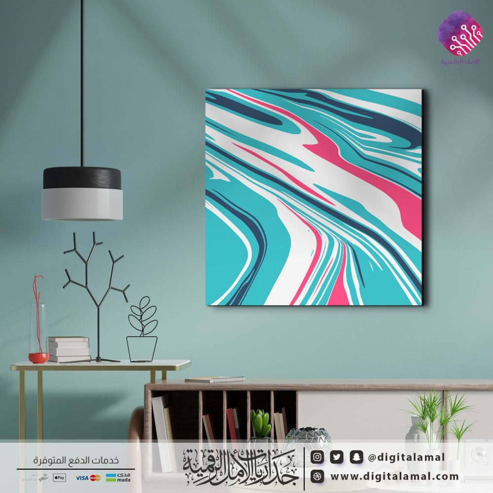 لوحة جدارية للفن التجريدي بألوان متناسقة من الأبيض والأزرق والوردي-لوحة جدارية مطبوعة بجودة ودقة عالية على خامة الكانفاس مع إطار مخفي ومصممة باحترافية وبعناية بأجود أنواع الأحبار لتتماشى مع مختلف أنواع الديكورات العصرية.