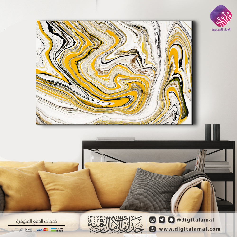 لوحة جدارية جميلة للفن التجريدي بألوان متناسقة لتدرجات الأبيض والأصفر-لوحة جدارية مطبوعة بجودة ودقة عالية على خامة الكانفاس مع إطار مخفي ومصممة باحترافية وبعناية بأجود أنواع الأحبار لتتماشى مع مختلف أنواع الديكورات العصرية.