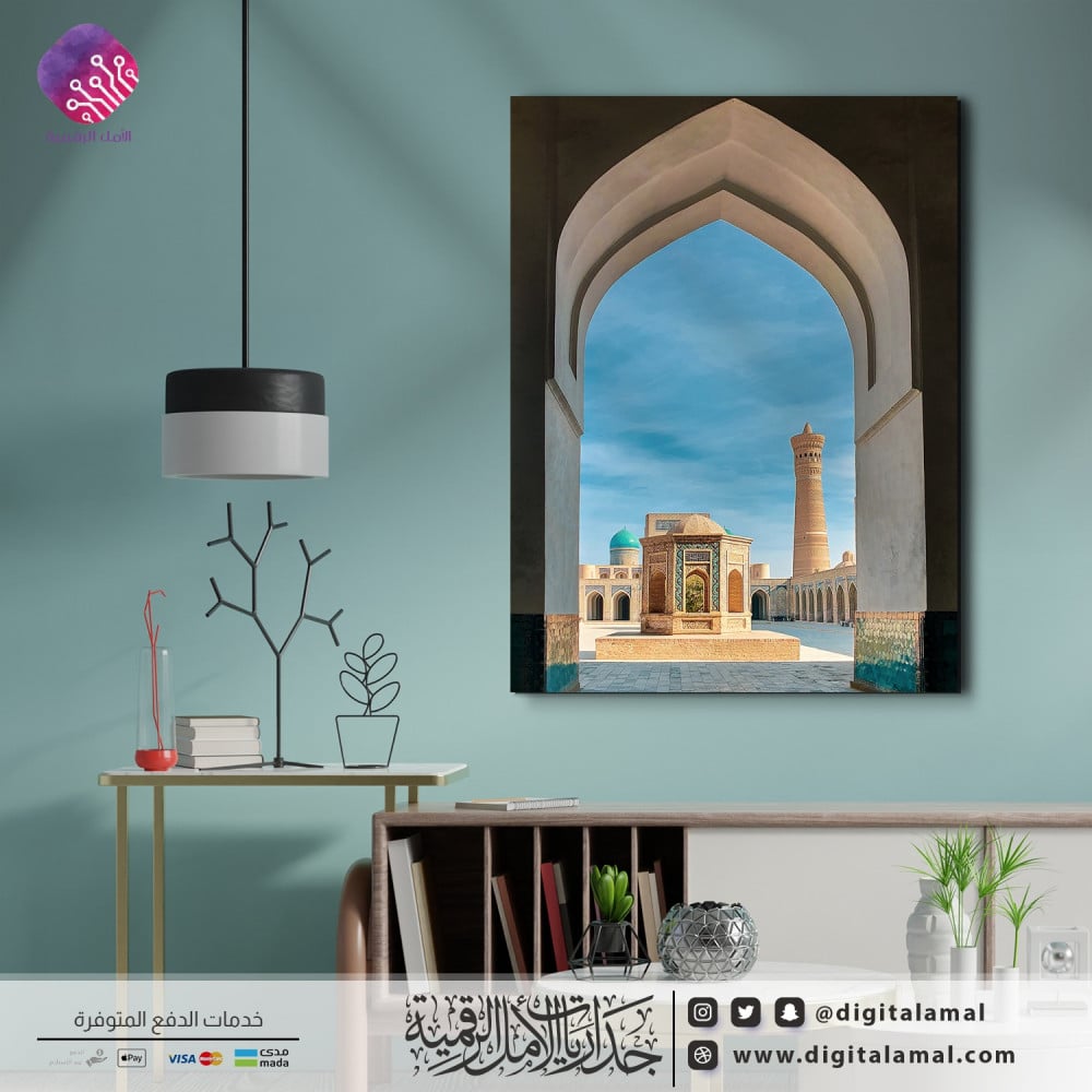 لوحة جدارية مميزة لأحد المساجد الإسلامية من الداخل-لوحة جدارية مطبوعة بجودة ودقة عالية على خامة الكانفاس مع إطار مخفي ومصممة باحترافية وبعناية بأجود أنواع الأحبار لتتماشى مع مختلف أنواع الديكورات العصرية.