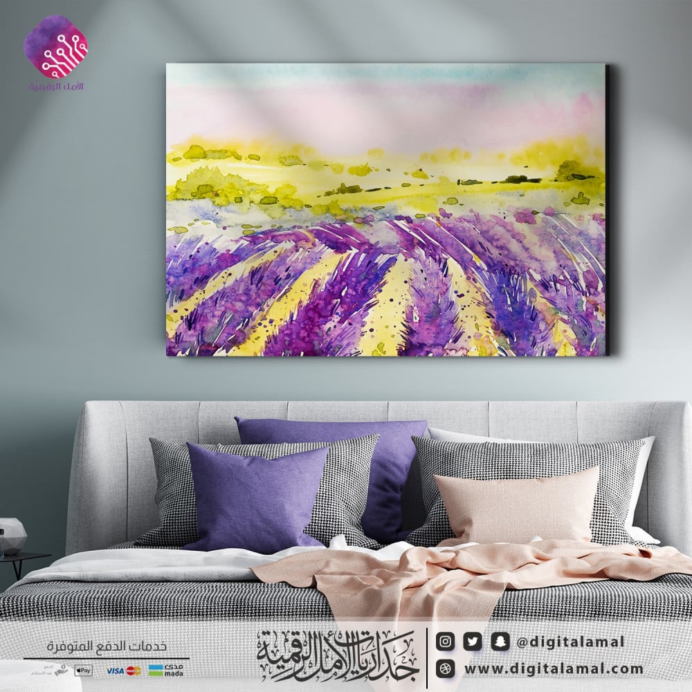 لوحة جدارية مميزة بألوان مائية كالوردي والأصفر-لوحة جدارية مطبوعة بجودة ودقة عالية على خامة الكانفاس مع إطار مخفي ومصممة باحترافية وبعناية بأجود أنواع الأحبار لتتماشى مع مختلف أنواع الديكورات العصرية.
