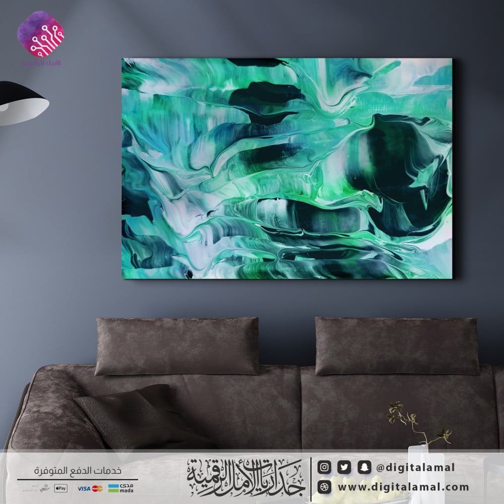 لوحة جدارية مميزة للفن التجريدي بألوان خضراء متدرجة-لوحة جدارية مطبوعة بجودة ودقة عالية على خامة الكانفاس مع إطار مخفي ومصممة باحترافية وبعناية بأجود أنواع الأحبار لتتماشى مع مختلف أنواع الديكورات العصرية.
