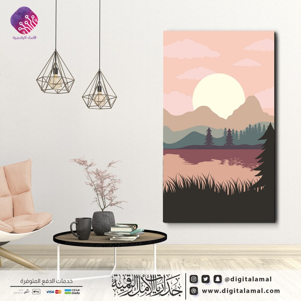 لوحة جدارية مميزة لإحدى البحيرات وفي الخلف غابة-لوحة جدارية مطبوعة بجودة ودقة عالية على خامة الكانفاس مع إطار مخفي ومصممة باحترافية وبعناية بأجود أنواع الأحبار لتتماشى مع مختلف أنواع الديكورات العصرية.