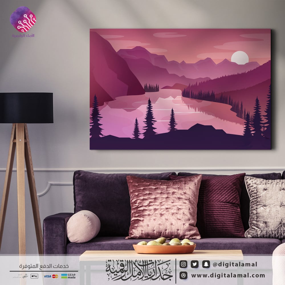 لوحة جدارية مميزة لإحدى البحيرات المحاطة بالجبال-لوحة جدارية مطبوعة بجودة ودقة عالية على خامة الكانفاس مع إطار مخفي ومصممة باحترافية وبعناية بأجود أنواع الأحبار لتتماشى مع مختلف أنواع الديكورات العصرية.