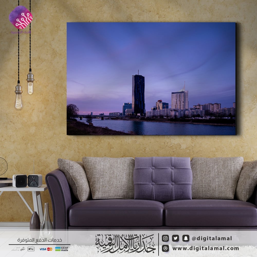 لوحة جدارية مميزة لمدينة القاهرة ويظهر نهر النيل وفوقه أحد الجسور-لوحة جدارية مطبوعة بجودة ودقة عالية على خامة الكانفاس مع إطار مخفي ومصممة باحترافية وبعناية بأجود أنواع الأحبار لتتماشى مع مختلف أنواع الديكورات العصرية.