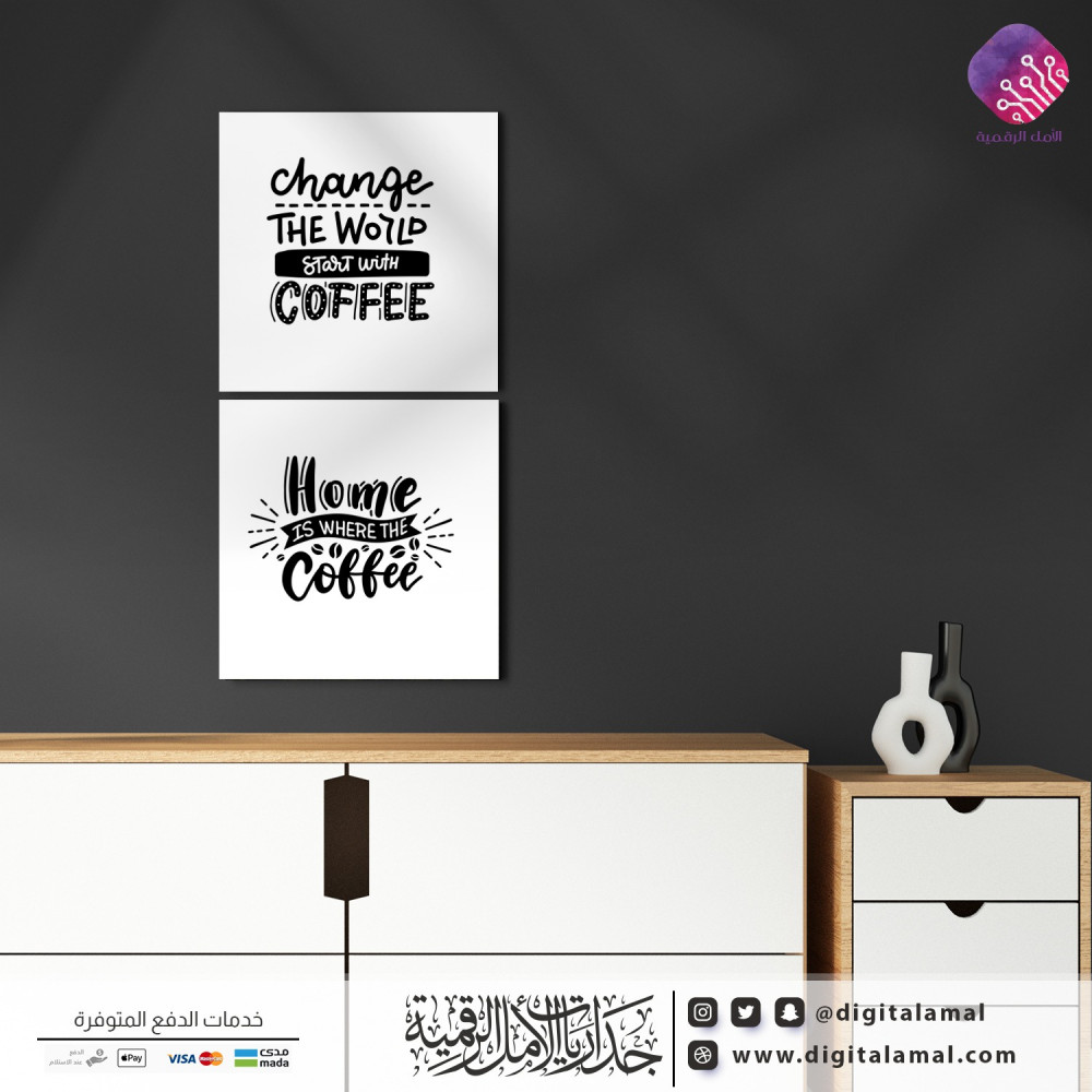 لوحات جدارية متعددة بتصميم عصري لمحبي القهوة-لوحات جدارية متعددة مكونة من جزئين، بتصميم عصري وجذاب،اللوحات مصنوعة من خامة الكانفاس المشدود على اطار خشبي متين مخفي ،مصممة ومطبوعة بدقة واحترافية عالية لتناسب ديكورات المنازل والمقاهي ، استخدمت أحبار ذات جودة عالية،لتضفي على الأثاث رونقاً وجمالاً